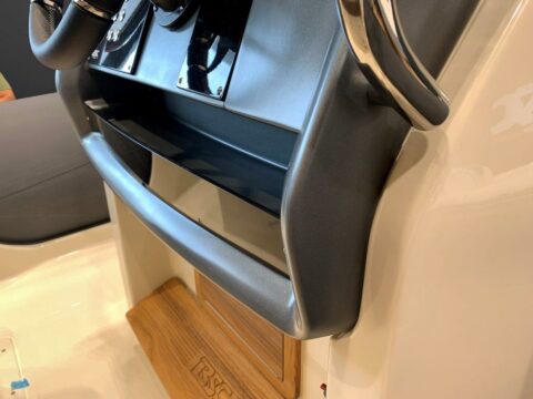 Options : guindeau électrique avec ancre et chaine, Roll bar inox avec Bimini, feux de navigation à led et Klaxon sur rollbar. Douchette arrière. Electronique GPS sondeur couleur Garmin 72 Dv avec carte méditerranéen G3 vision. Direction hydraulique Seastar avec assistance électrohydraulique. Taud de Console, taud de leaning post. Taud de dossier arrière. Armement de sécurité complet pour 12 personnes. Antifouling. Tour de wake inox.