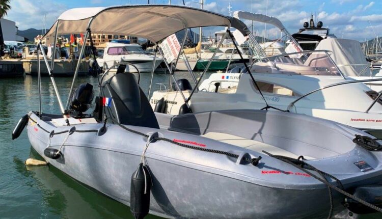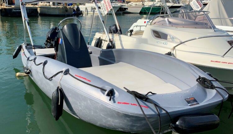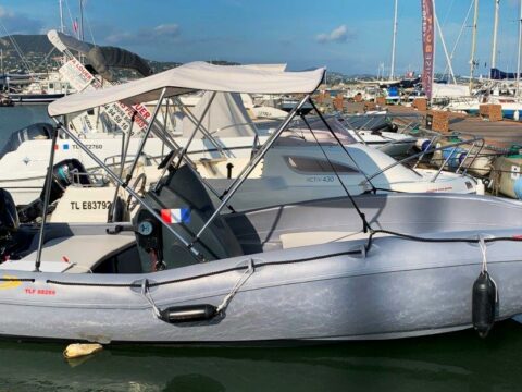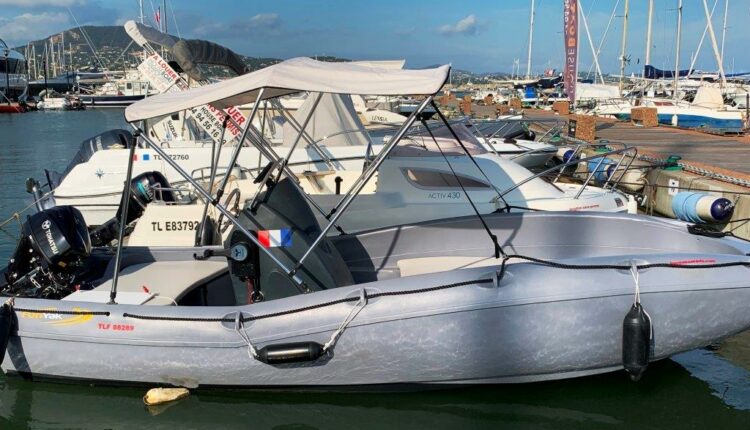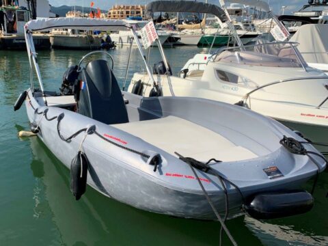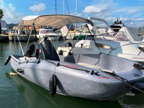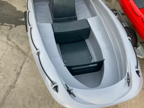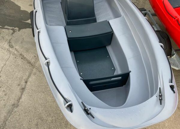 Bateau en plastique rotomoulé de couleur gris anthracite : robuste et bon passage en mer. Homologué Division D222.