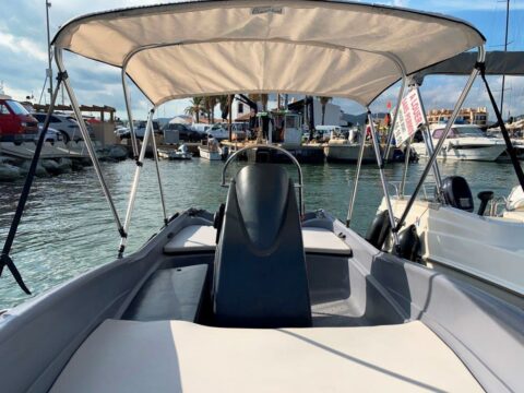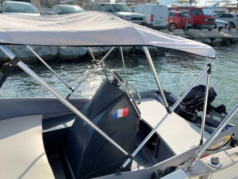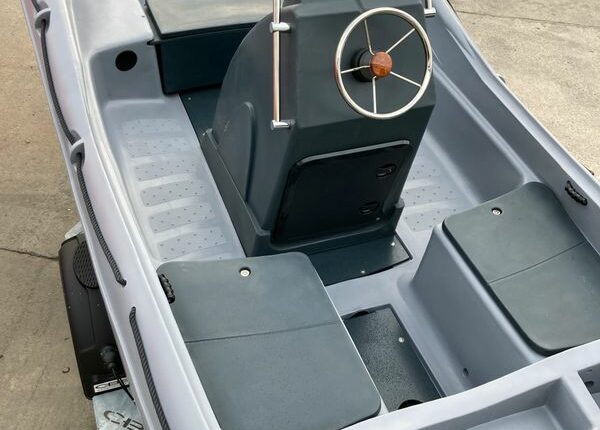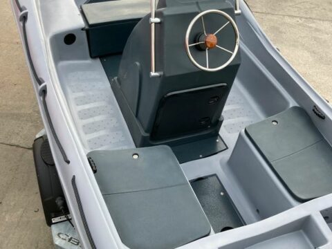 Equipement d’origine : Coffre banc étanche, espace baille à mouillage, 4 taquets d’amarrage, main courante en corde, anneau de remorquage, coffre arrière latéraux avec fermeture inox.